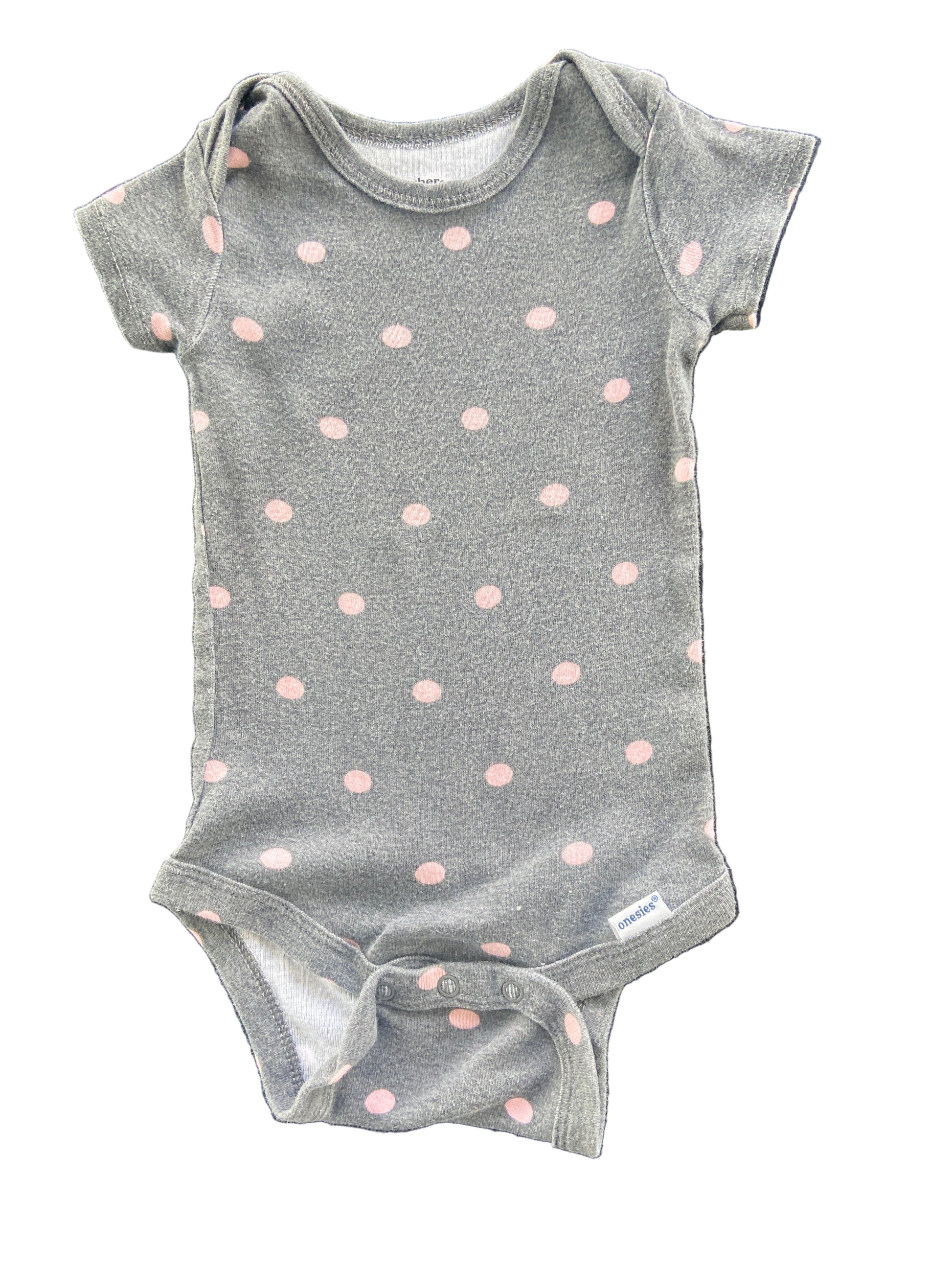 Short Sleeved Grey Onesie with pink polka dots