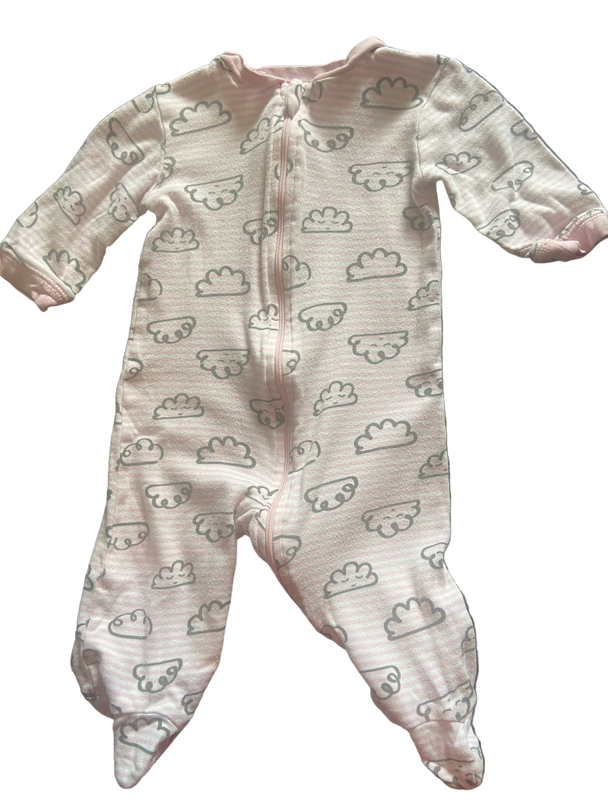 Pink and white stripes with clouds, long sleeves with zipper close