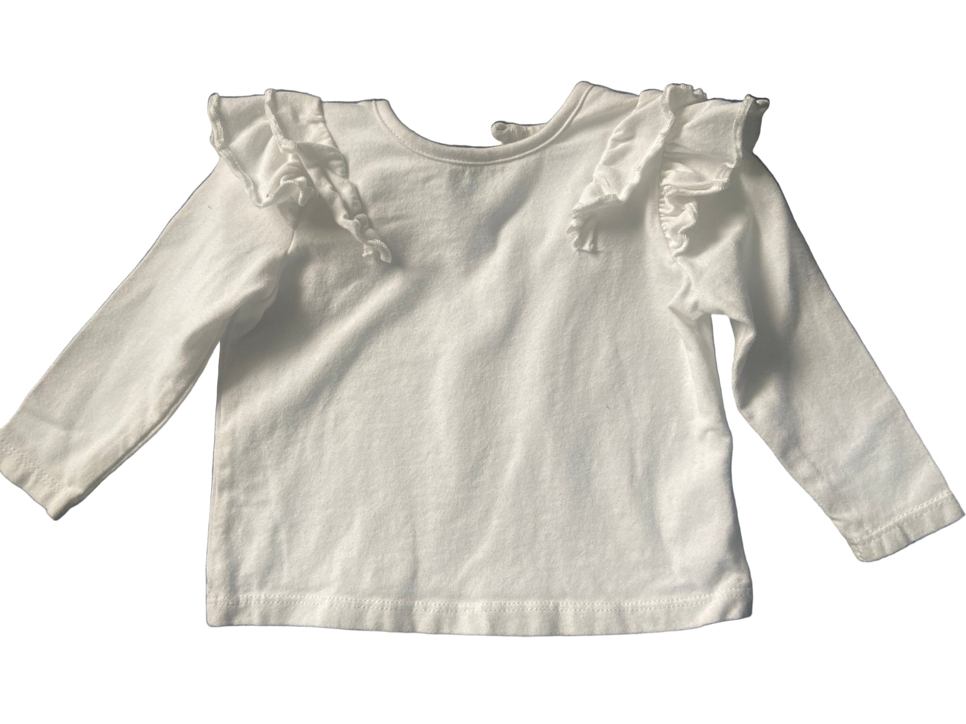 Rise Little Earthling, Long Sleeved White Frilled Shirt, 3-6 months